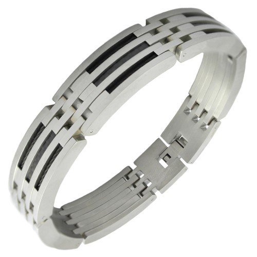 This bracelet is made from high quality 316L Stainless Steel, and has steel cable and carbon fiber accents