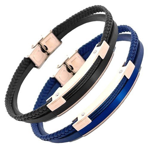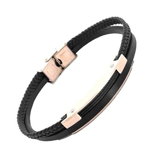 Multi-String Leather & Rose Gold Stainless Steel Bracelet w/ Accent quantity