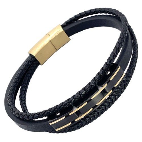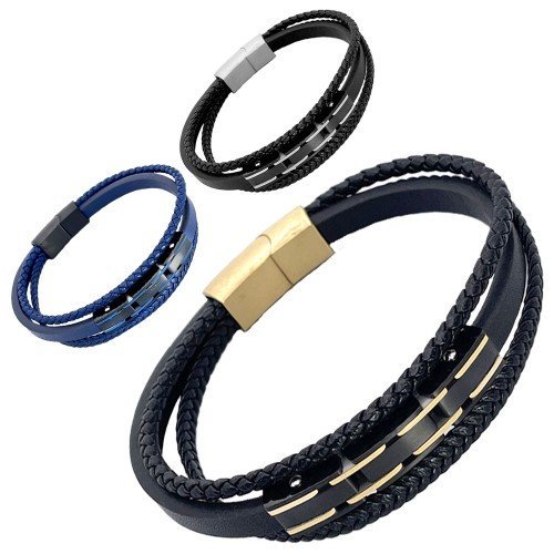 Multi-String Leather & Stainless.Steel Bracelet w/ Accent quantity