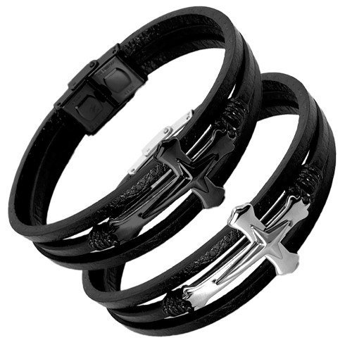 Multi String Leather w/ Stainless Steel Sideways Cross Bracelet quantity