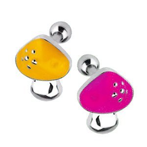Base Metal Happy Mushroom Barbell Cartilage Earing For Tragus/Helix Piercings. Size and Color Options Available.