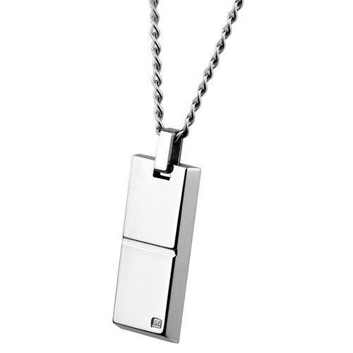 Neo-Classic Stainless Steel Pendant With CZ Stone Accent.