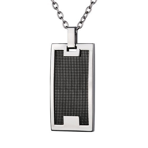 Rectangular Stainless Steel Pendant With Black Mesh Inlay