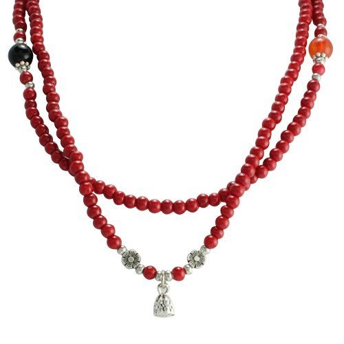 Red Bead with Stainless Steel Lotus Flower Pendant