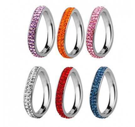 Slightly Curved Stainless Steel Ring With Foiled CZ Stones.