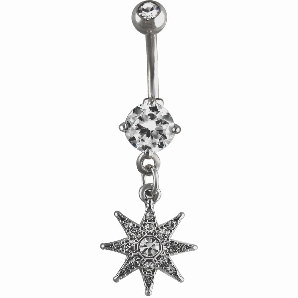 Stainless Steel 8 Pointed Star CZ Dangle Belly Ring