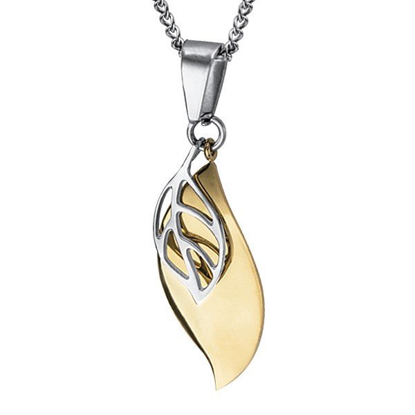 Stainless Steel Leaves Foliage Pendant with Gold and Steel Leaves. The Bail Can Accommodate a Chain Up To 4.5mm Thick.
