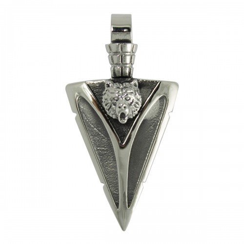 Stainless Steel Arrow Head with Bear Face Pendant