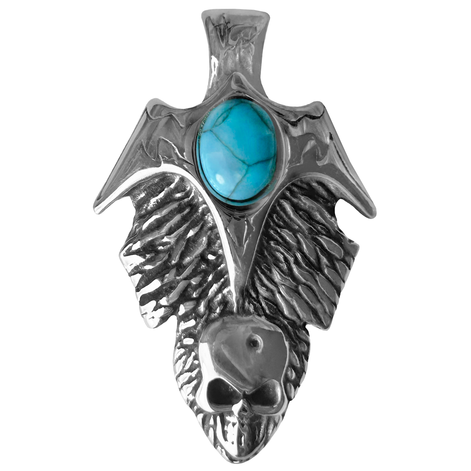 Stainless Steel Arrowhead w/ Skull & Turquoise Stone Pendant