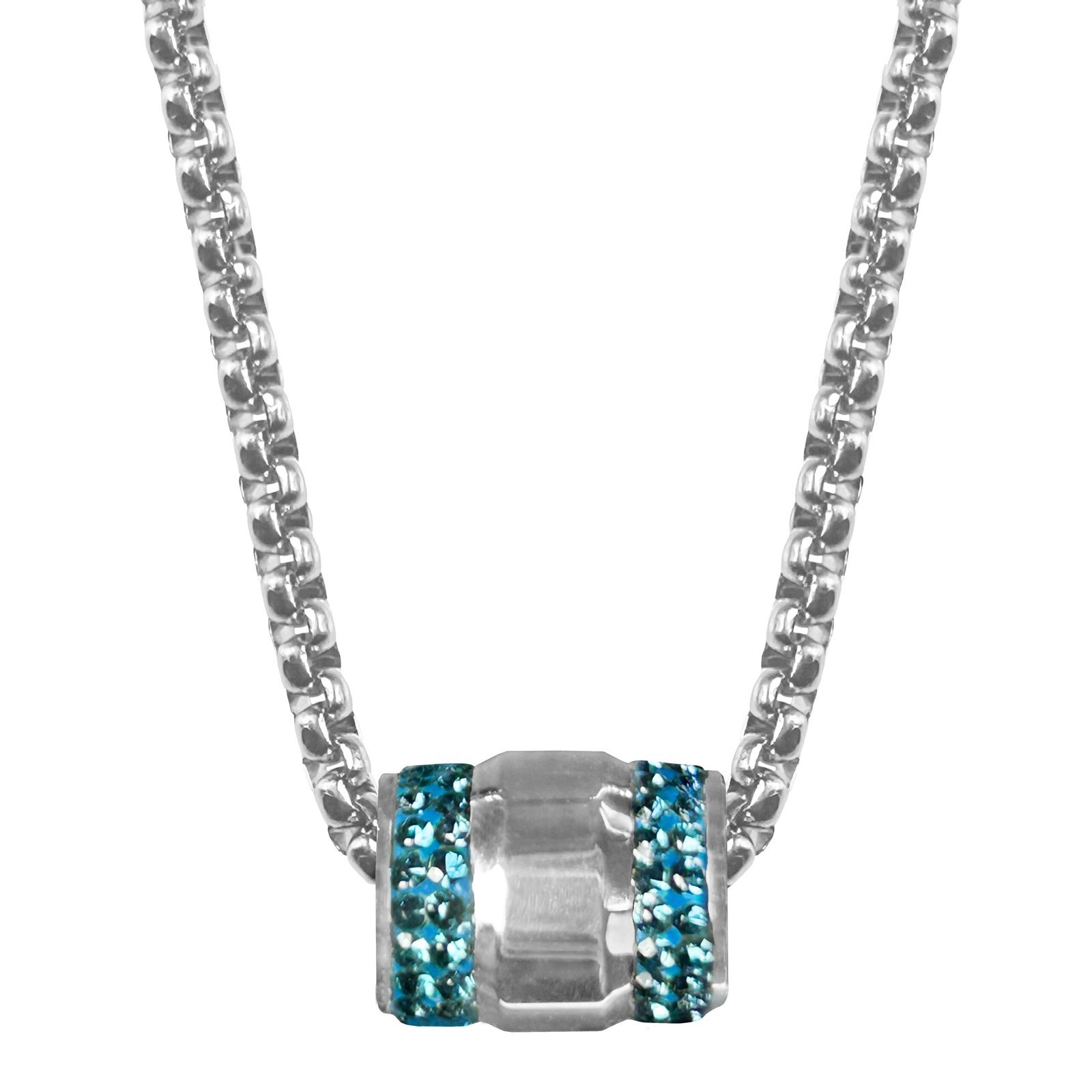 Stainless Steel Barrel w/ Blue CZ Necklace