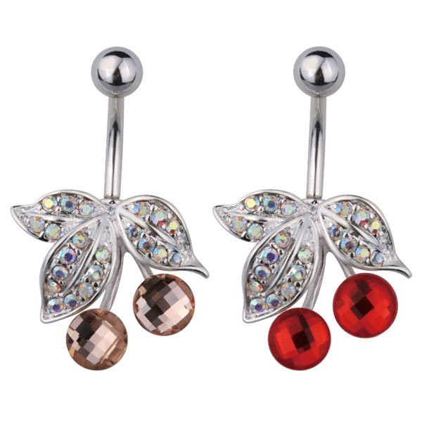 Stainless Steel Belly Ring with Crystal AB Jeweled Leaves and Fruits