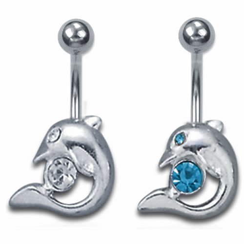 Very Nice Dolphin Belly Ring With Stone For an Eye and Holding Onto A Stone.