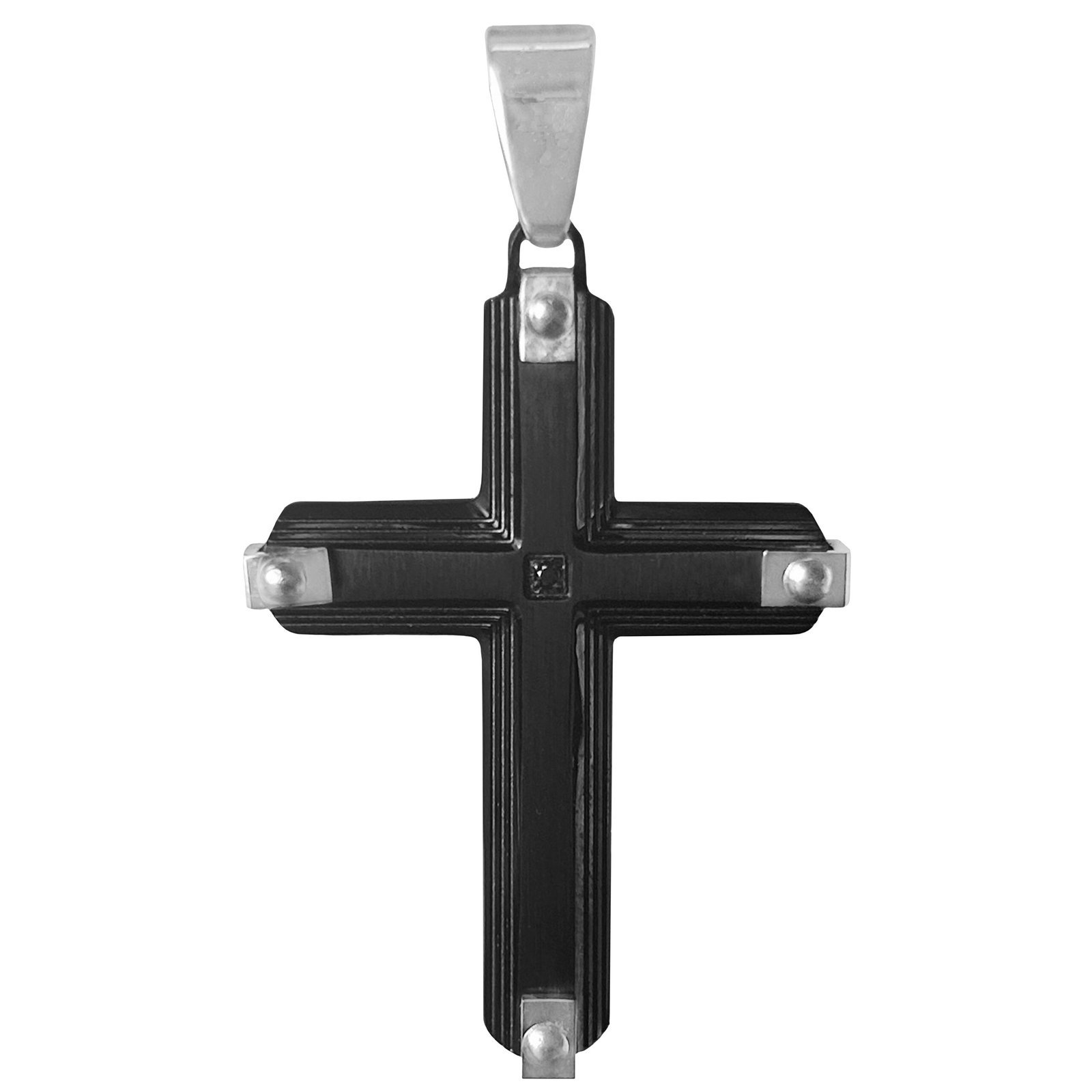 Stainless Steel Black Cross Pendant with Cz stone in Center