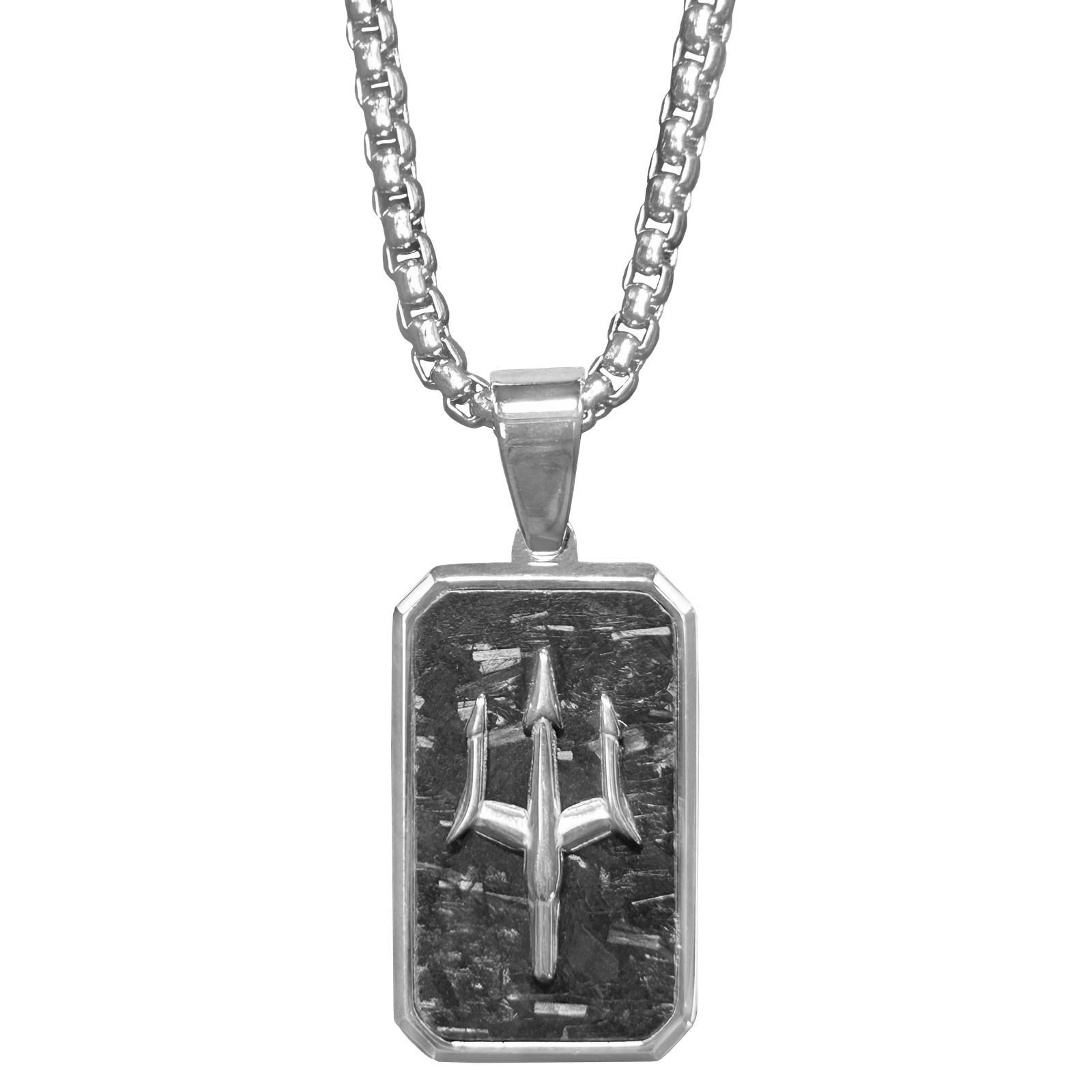 Stainless Steel Black Dog Tag w/ Trident Necklace