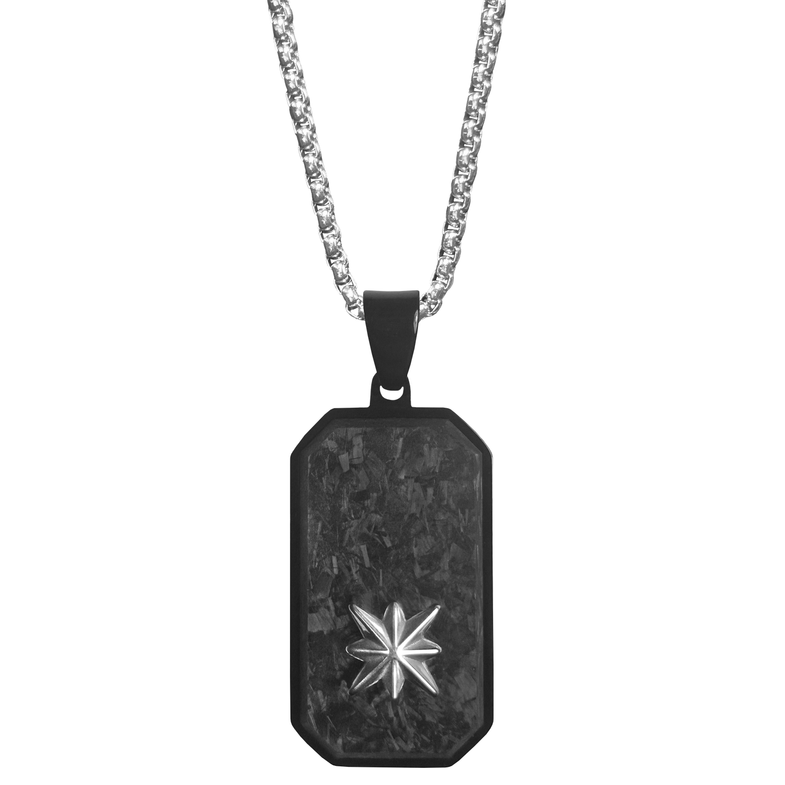 Stainless Steel Black Pvd Dog Tag w/ Star Necklace