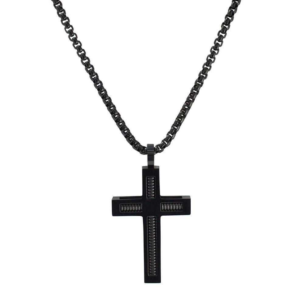 Stainless Steel Black PVD Rolo Chain with Modern Wire Cross