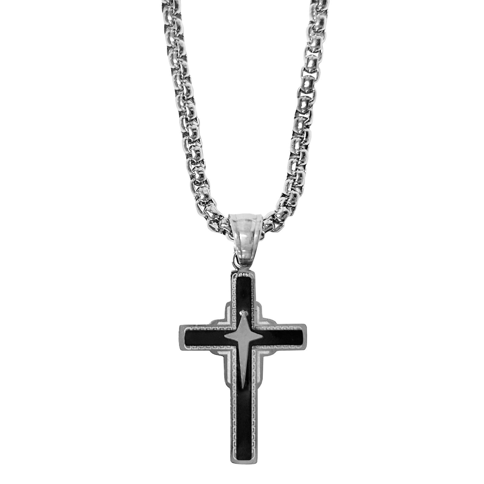 Stainless Steel Black & Steel Cross Necklace quantity