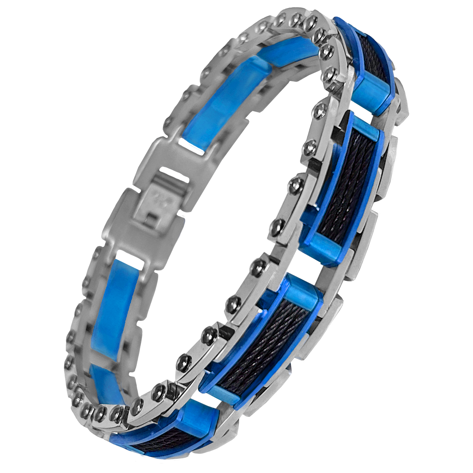 Stainless Steel & Blue Link Bracelet w/ Cable Wire