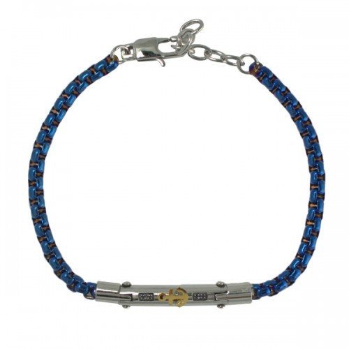 Stainless Steel Blue Rolo Link Bracelet with Steel Bar and Gold PVD Anchor