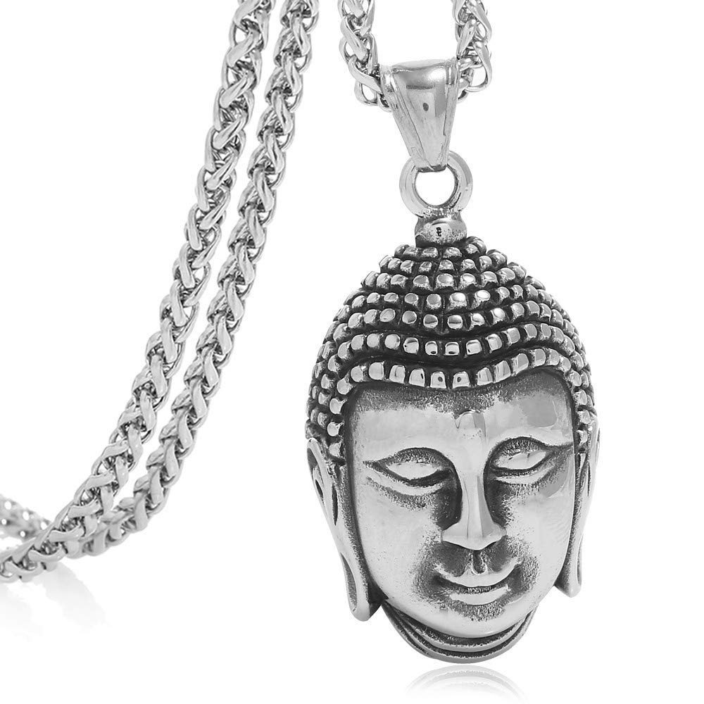 Stainless Steel Buddha Head Necklace – 30″ Wheat Chain