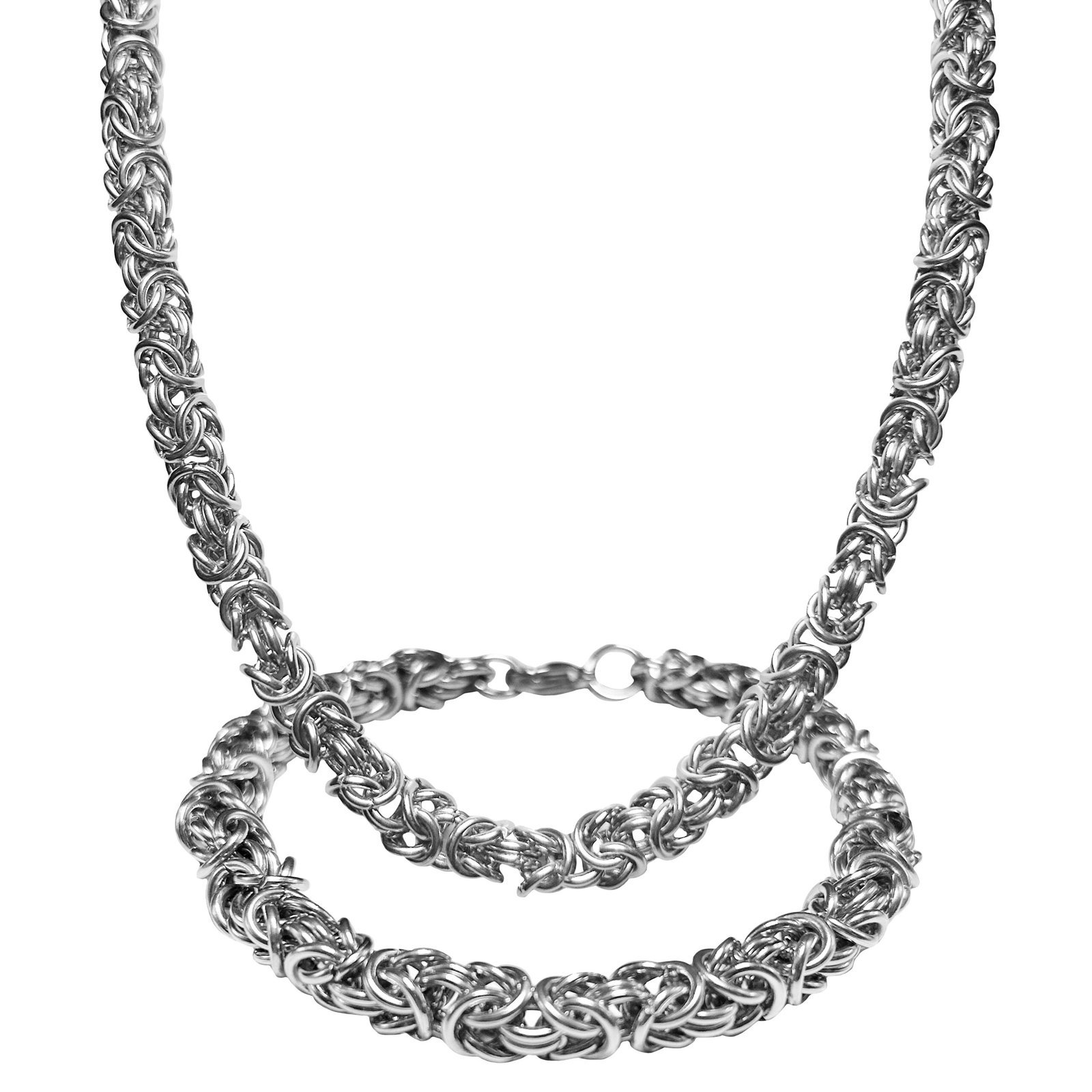Stainless Steel Flat Gold Byzantine Necklace / Bracelet Set