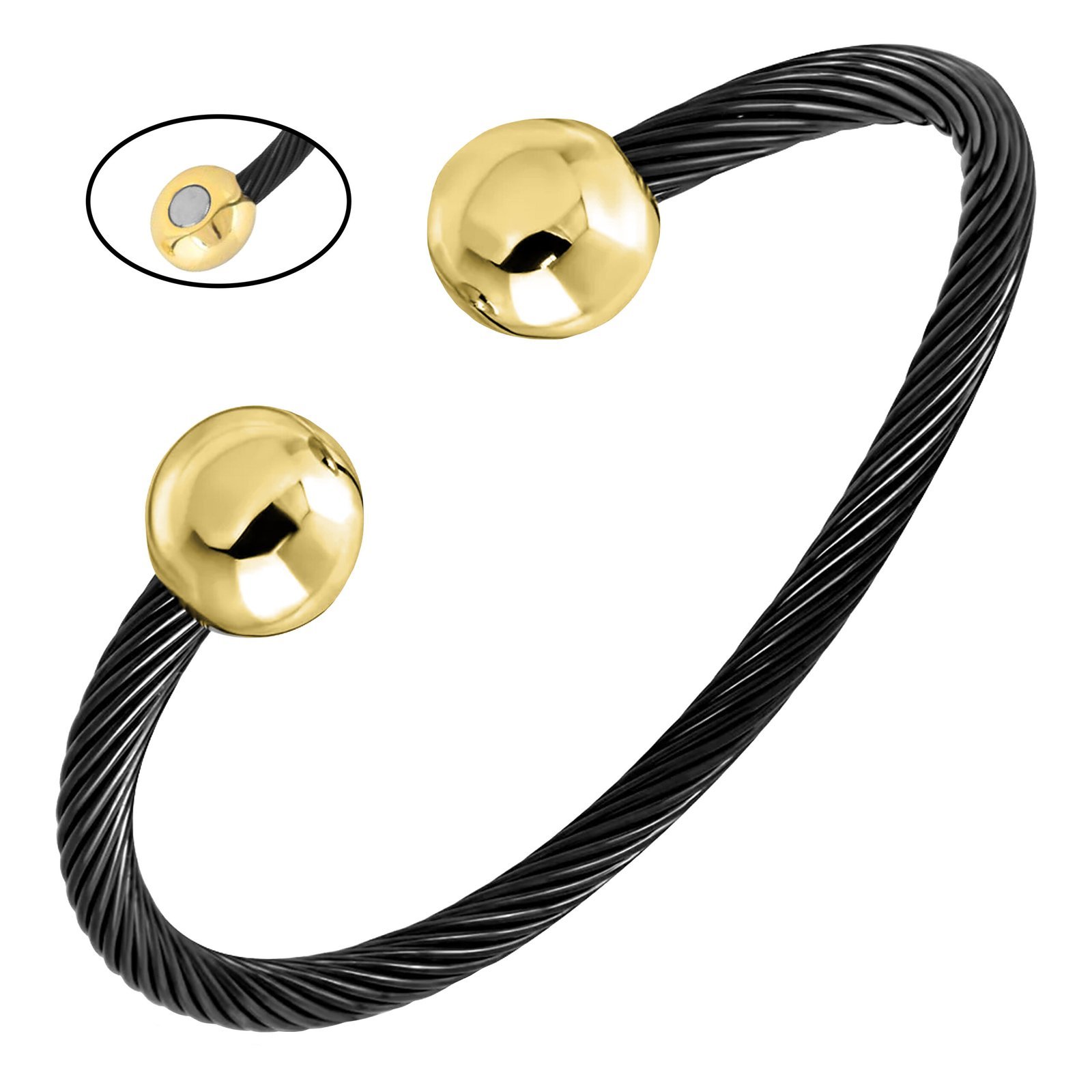 Stainless Steel Cable Wire Bangle w/ Gold Magnet Studs quantity