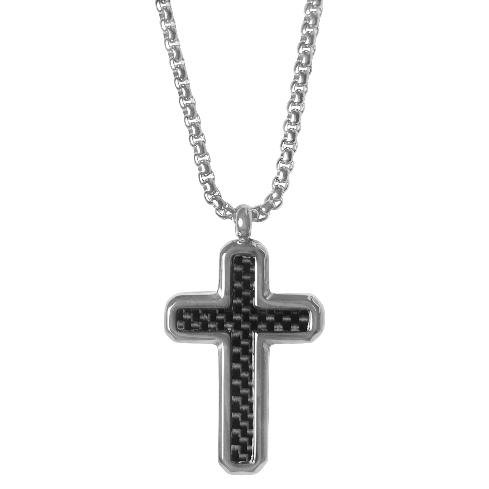Stainless Steel Carbon Fiber Cross Necklace