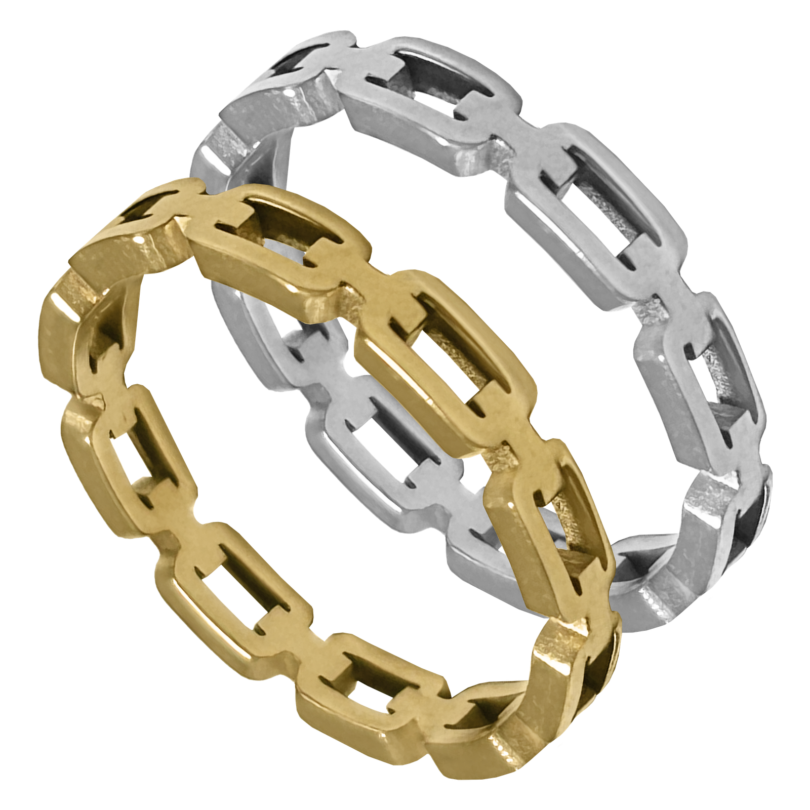 Stainless Steel Gold PVD Circle Chain Ring w/ cz