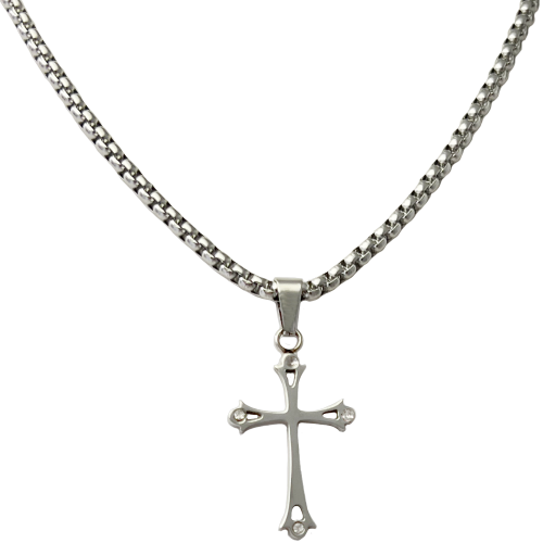 Stainless Steel Chain w/ Jeweled Cross Pendant