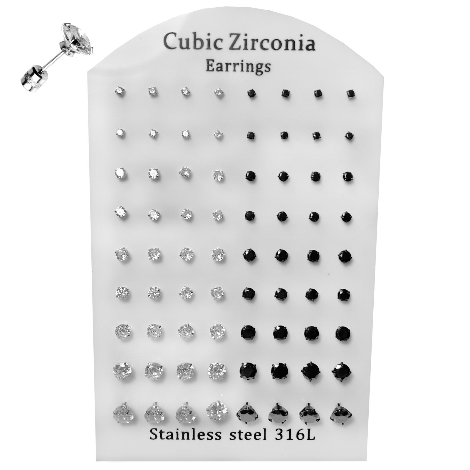 Stainless Steel Clear / Black Ear Stud Display with Fancy Back