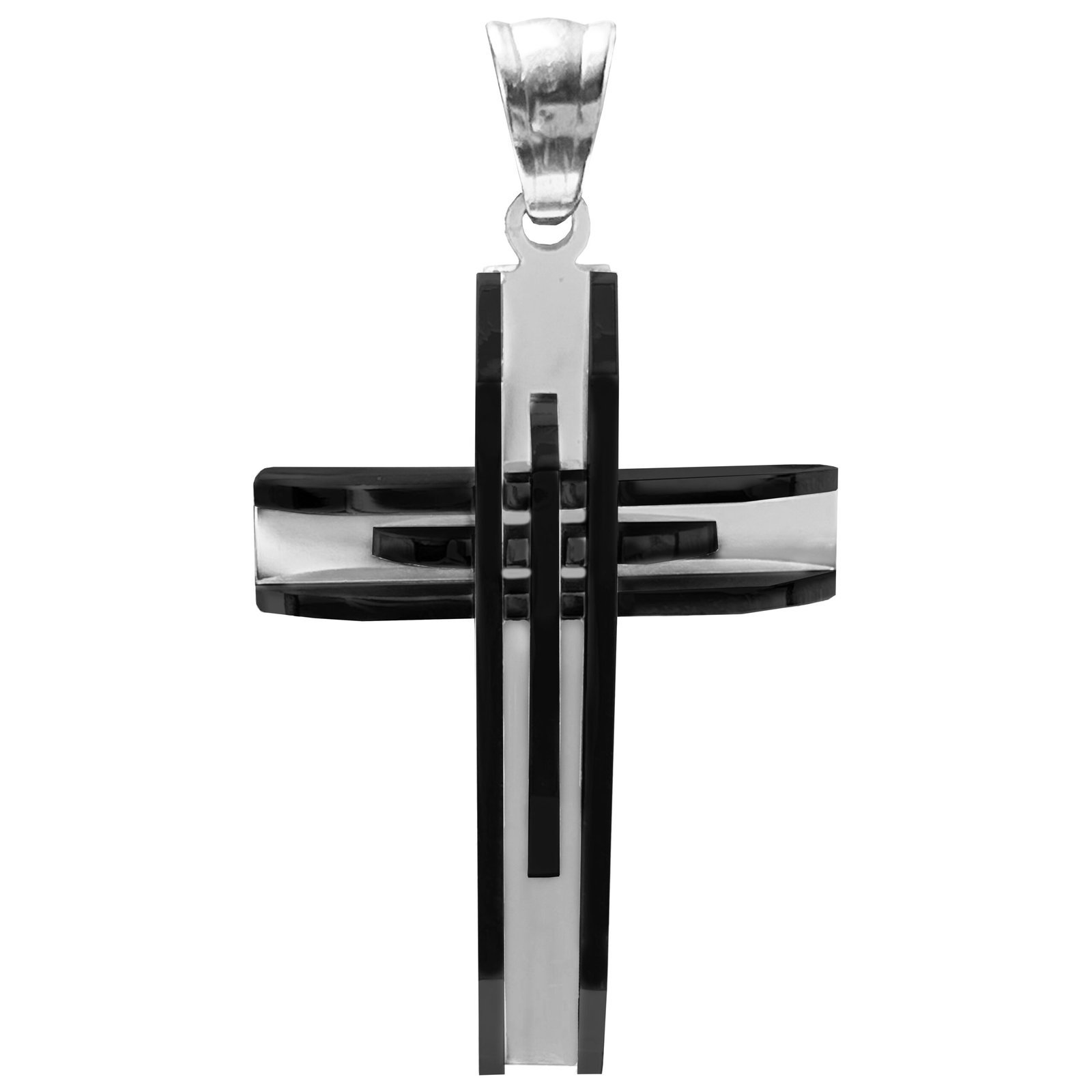 Stainless Steel Cross Pendant with Black Trim Accents