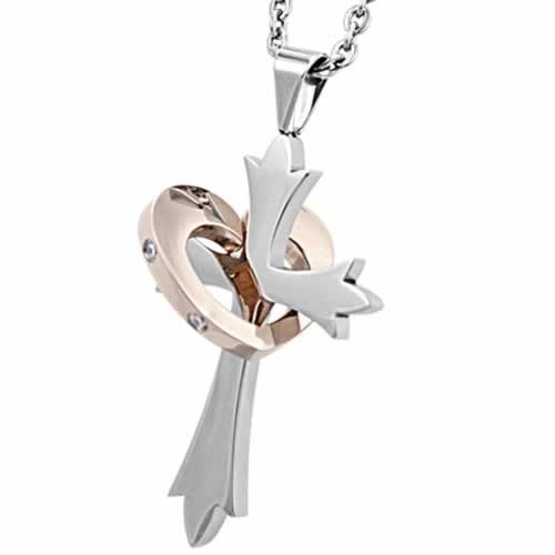 Stainless Steel Cross Pendant With Rose Gold PVD Heart