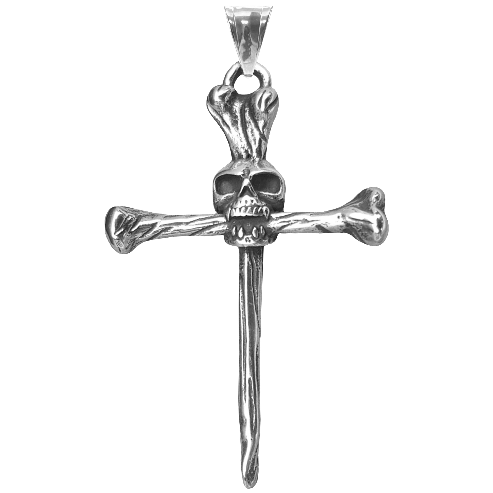 Stainless Steel Cross Pendant with Skull and Bones