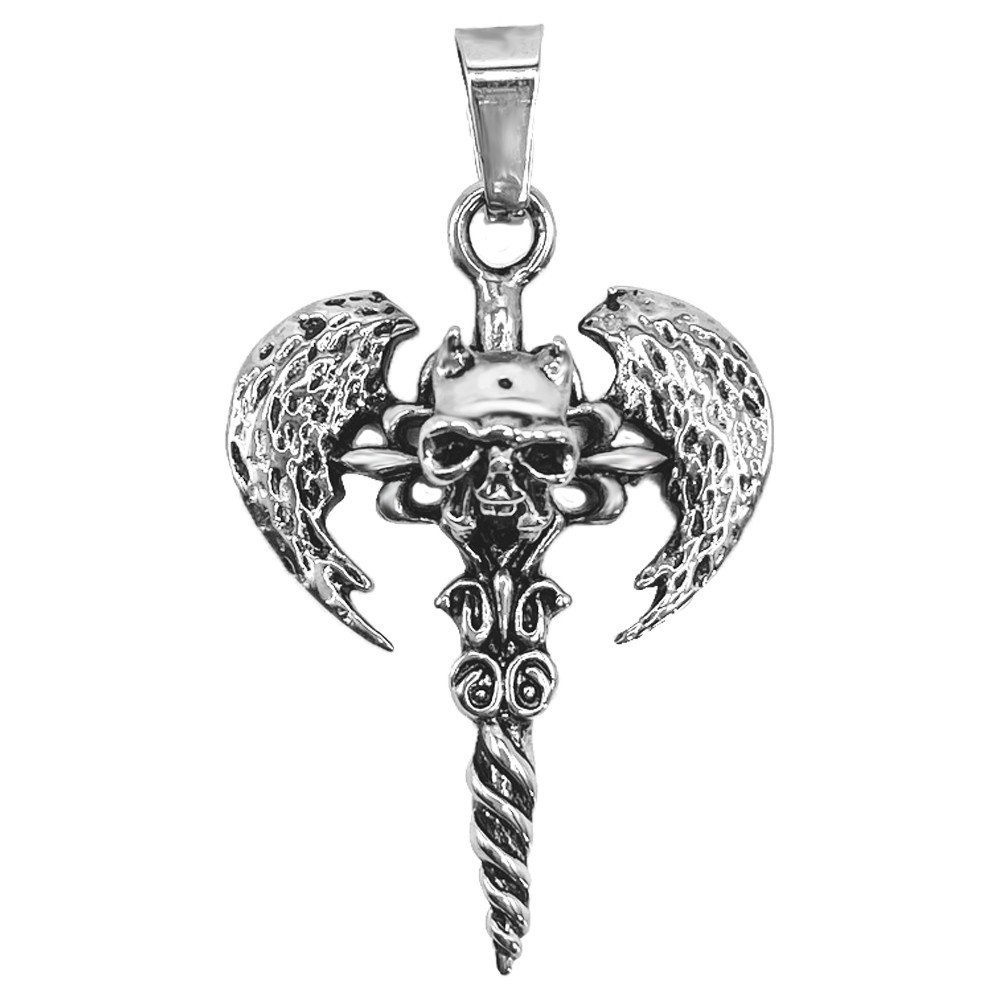 Stainless Steel Cross w/ Skull & Wings Pendant
