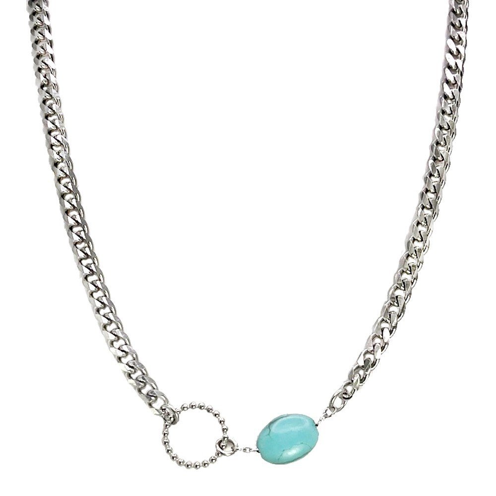 Stainless Steel Cuban Link Necklace w/ Faux Turquoise Bead Pendant