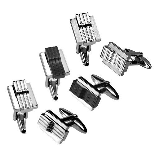 Stainless Steel Cufflinks With Raised Linear Design. This Item Is Available In Matte Steel, Shinny Steel, And Black PVD.