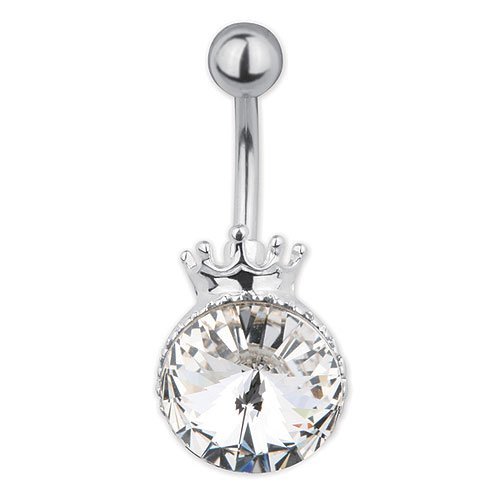 Stainless Steel CZ Stone Belly Ring with Princess Crown