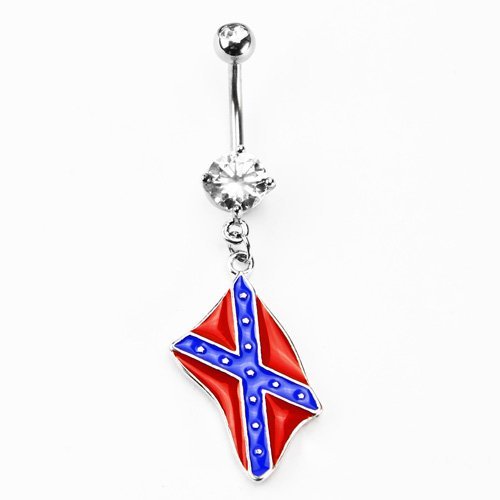 Stainless Steel Dangle Confederate Rebel Flag Belly Ring