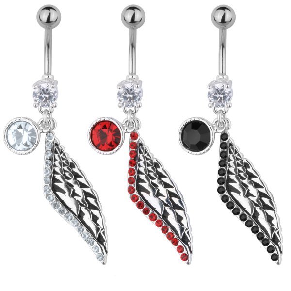 Dangling Belly Ring with Jeweled Wing and Bezel Set CZ Charm. This Item Has Three Different Colors To Choose From!