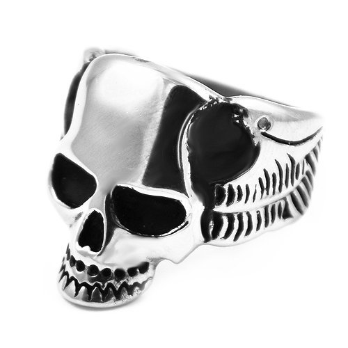 Stainless Steel Day of Dead Skull Ring w/ Gold Crosses