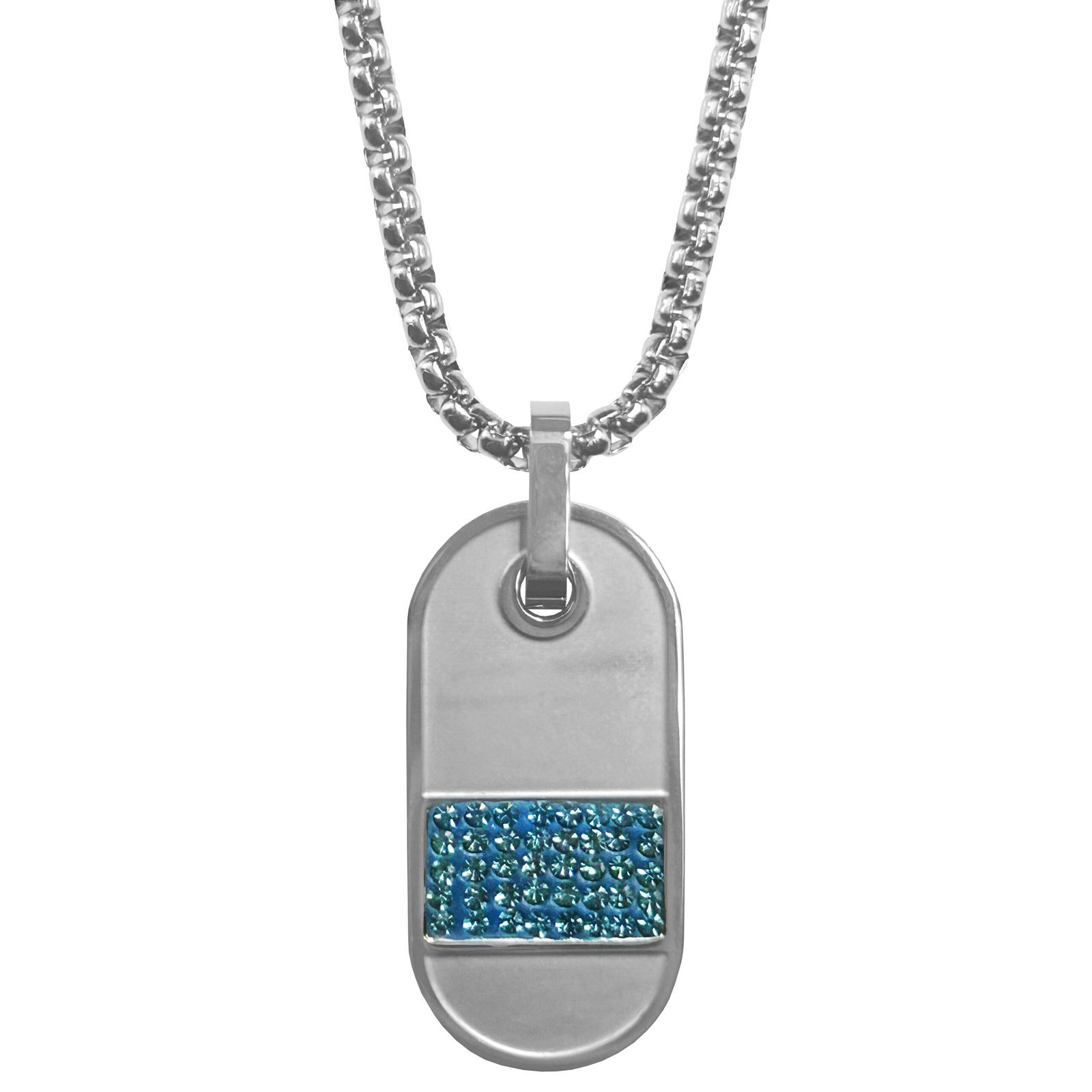 Stainless Steel Dog Tag w/ Blue CZ Necklace