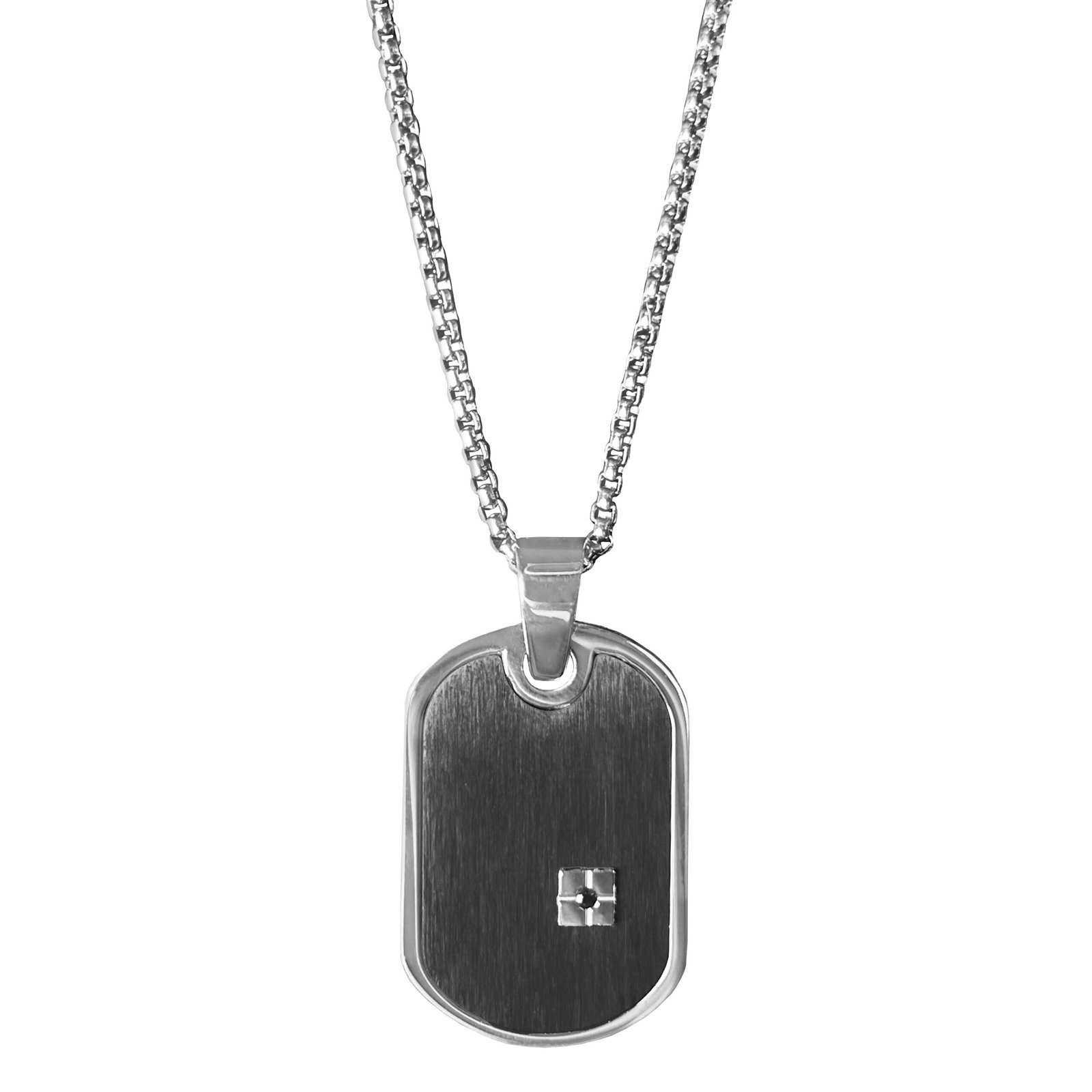 Stainless Steel Dog Tag w/ Cz Stone Necklace