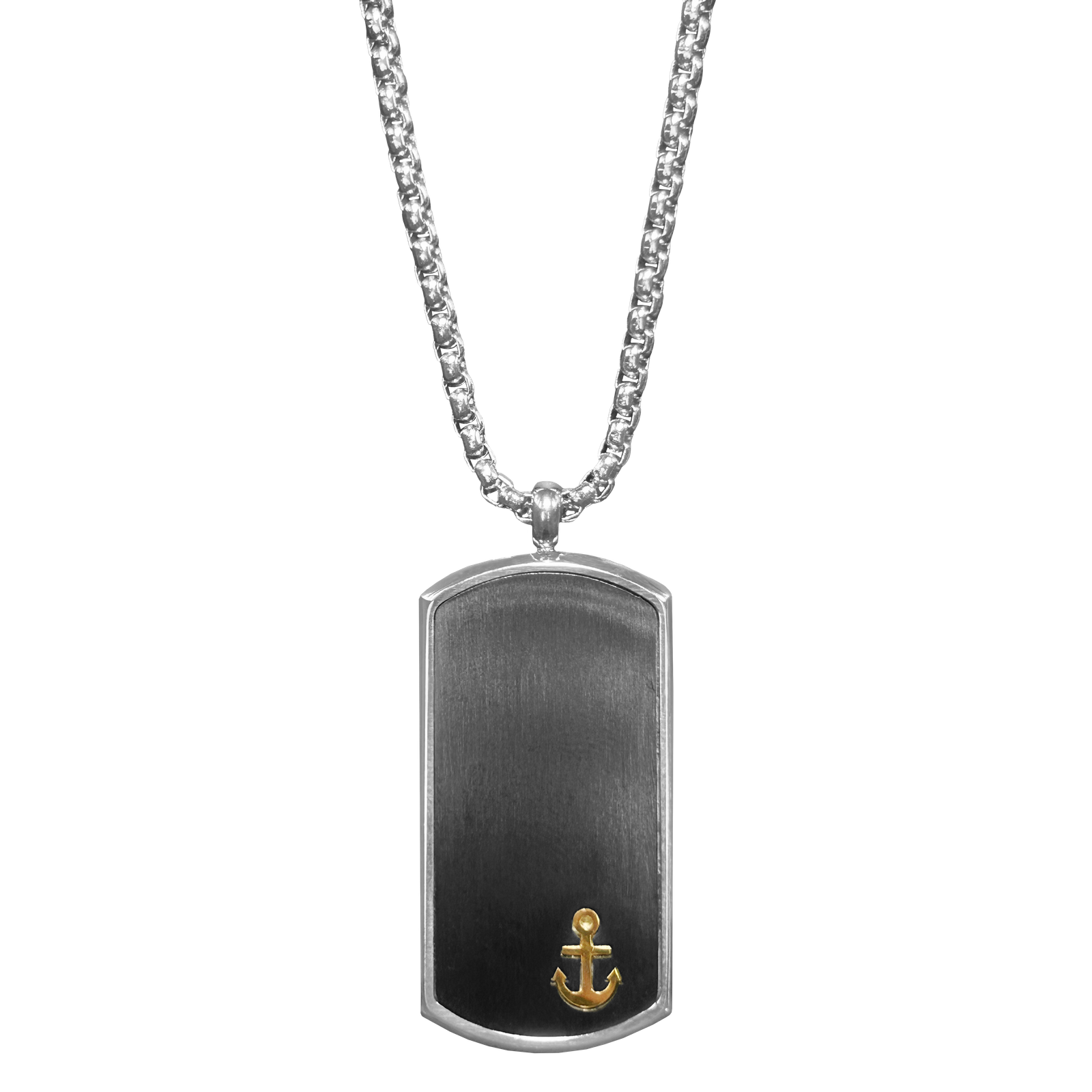 Stainless Steel Dog Tag w/ Gold Anchor Necklace