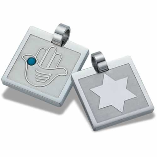 Stainless Steel Double Sided Dove Hamsa with Turquoise Stone and Star of David Pendant – Judica and Kabbalah