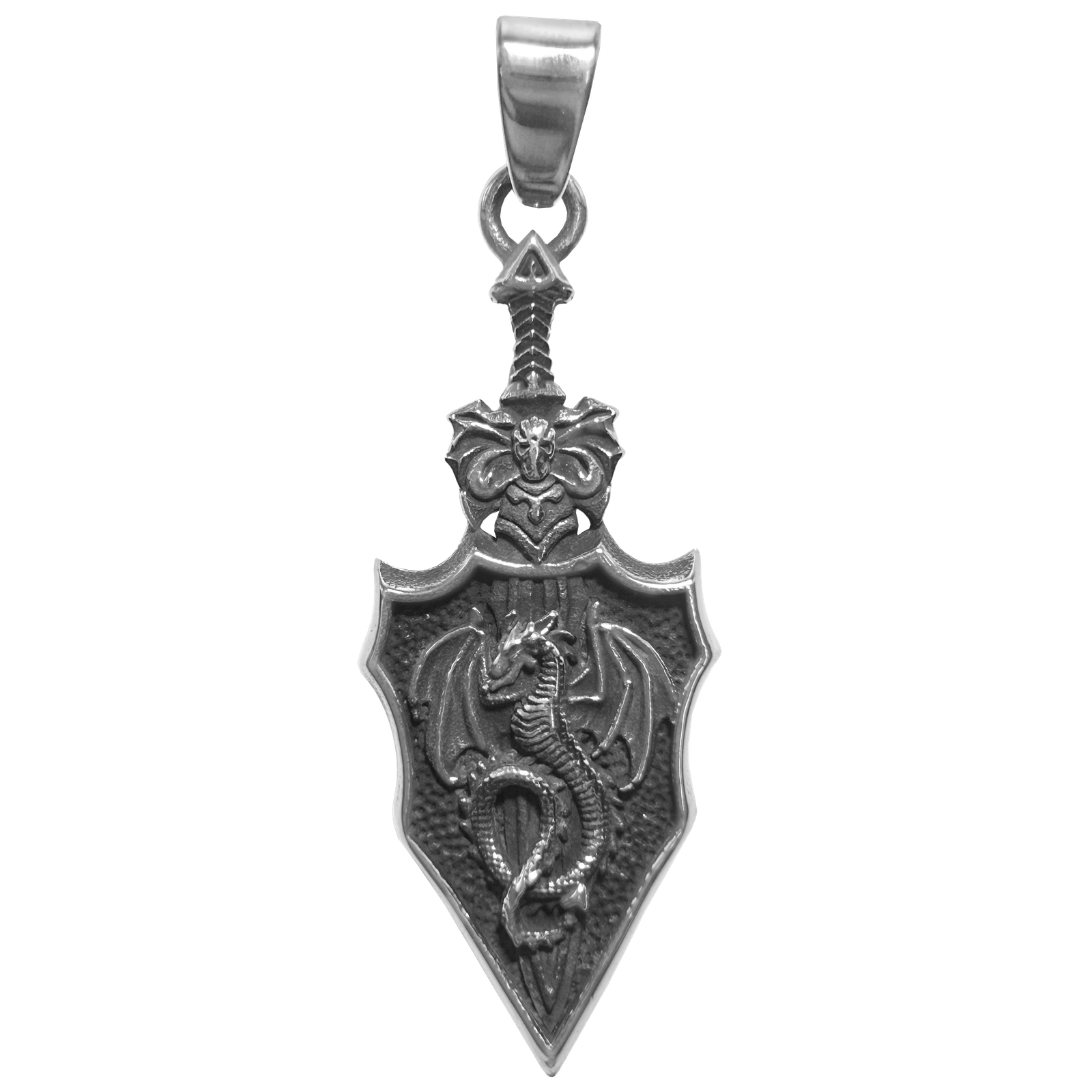 Stainless Steel Dragon Shield Pendant