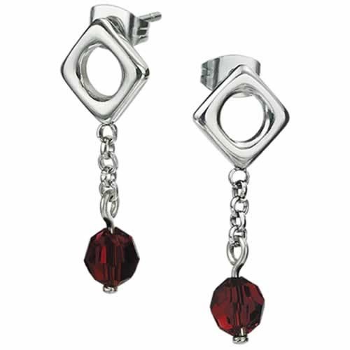 Stainless Steel Earrings With Dangling Garnet Stone