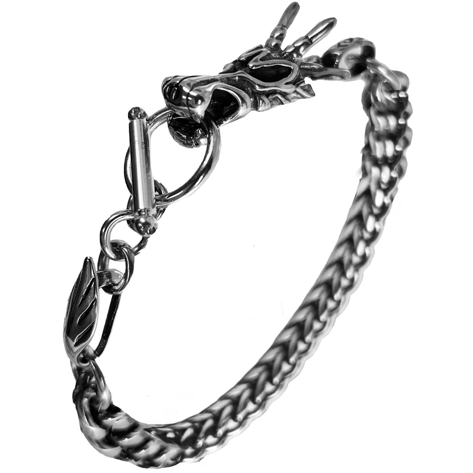 Stainless Steel Franco Bracelet with Dragon and Toggle Clasp