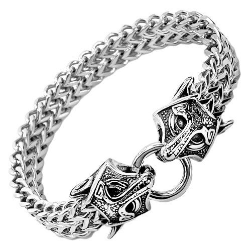 Stainless Steel Franco Link Bracelet with Wolf Head Clasp