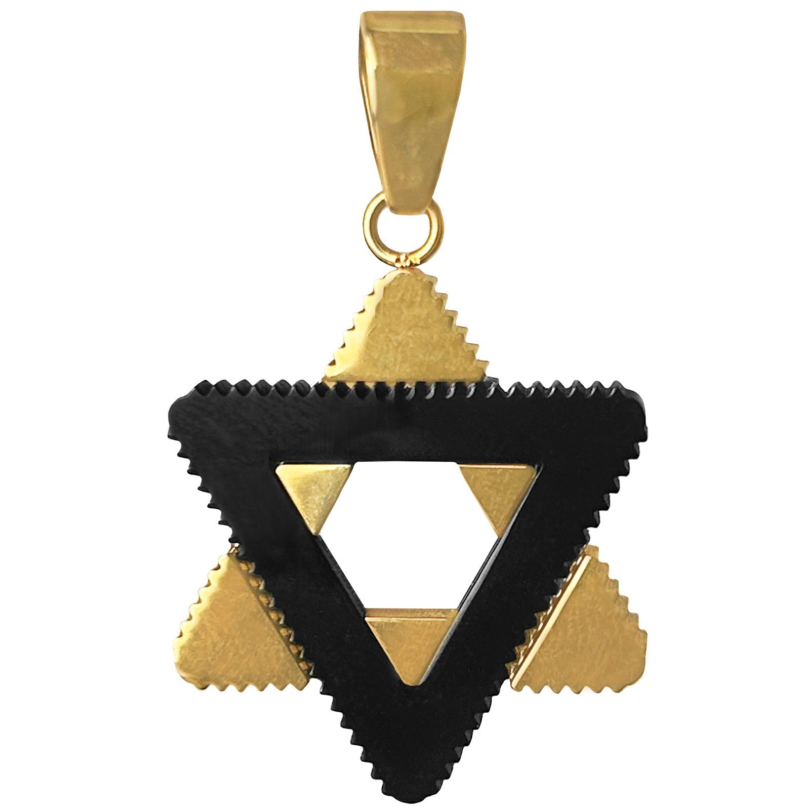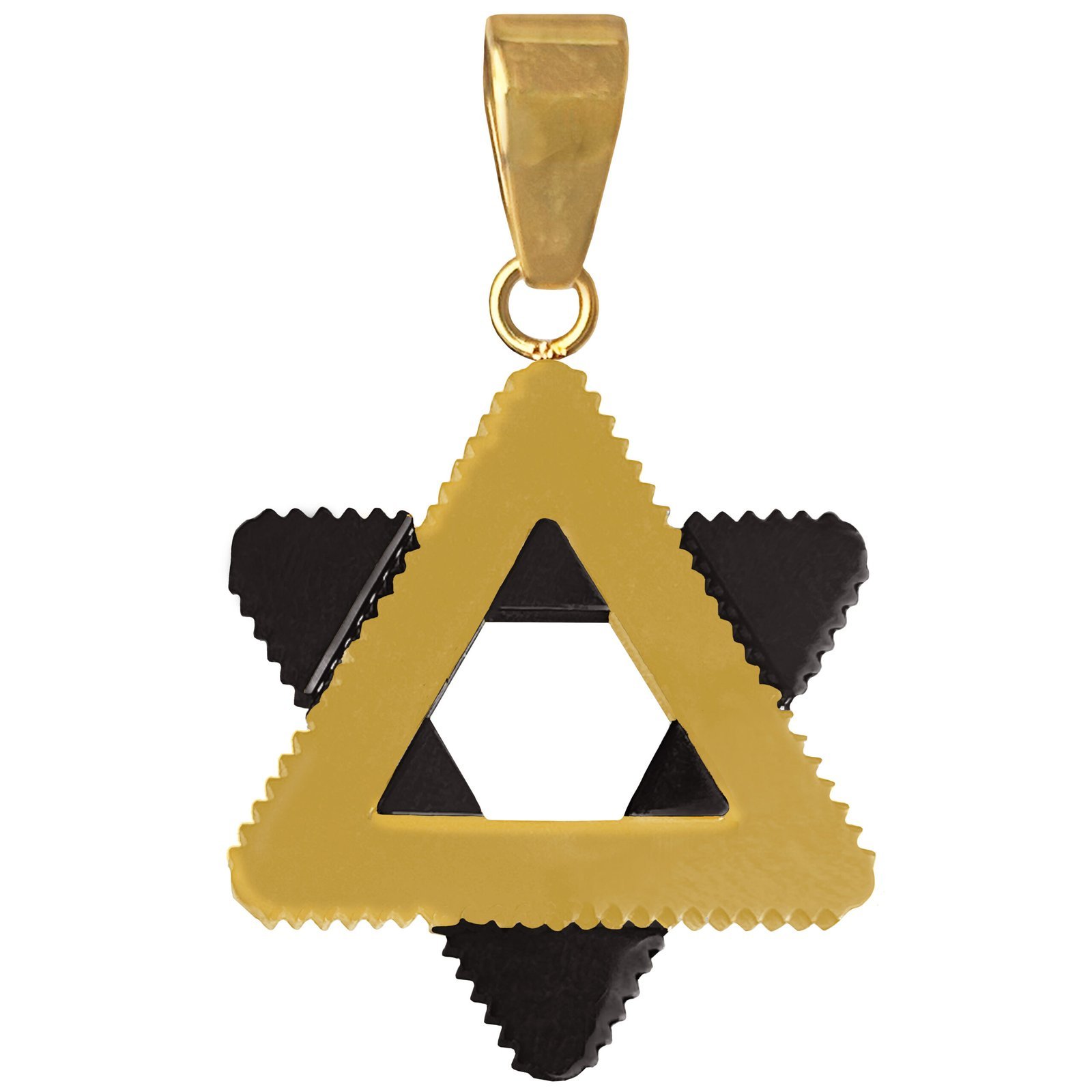 Stainless Steel Gold & Black Star of David Pendant w/ Ridged Edges