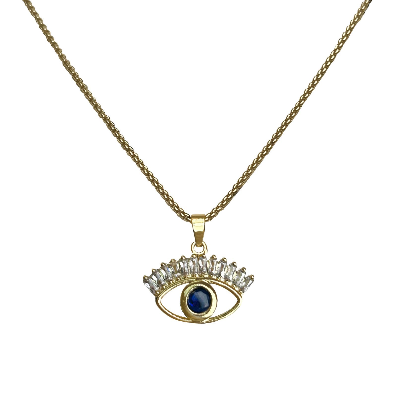 Stainless Steel Gold Chain with cz Evil Eye Pendant